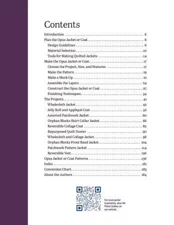 Whether using new fabrics or upcycling or repurposing an existing quilt, orphan blocks or fabric scraps, Making Quilted Patchwork Jackets instructs you through each step of the process to handcraft a quilted jacket. You will learn to properly position blocks, add appliqué elements, layer, quilt, and construct piece-by-piece. For beginners to wearable quilting, the authors provide an overview of basic garment construction, fabric selection, piecing and placement, liners, hem length, and finishing details including collars, cuffs, and pockets. Two basic multi-size downloadable patterns are available--adult and child--with multiple length options. Intermediate and advanced quilters can modify the projects to suit their level of expertise, finding inspiration from the gallery of quilted jacket photographs.